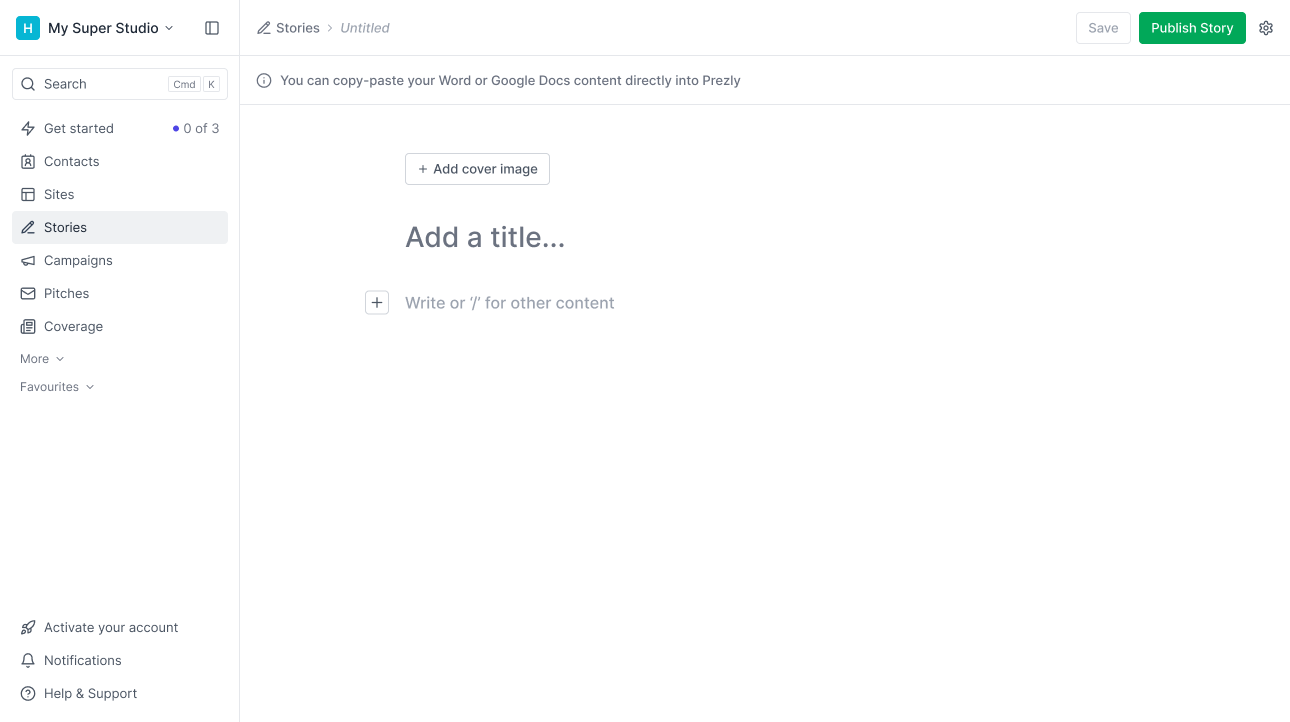 Our editor handles pasted content really well. That’s great for users who already have their story elsewhere and want to bring it into Prezly instead of writing from scratch.