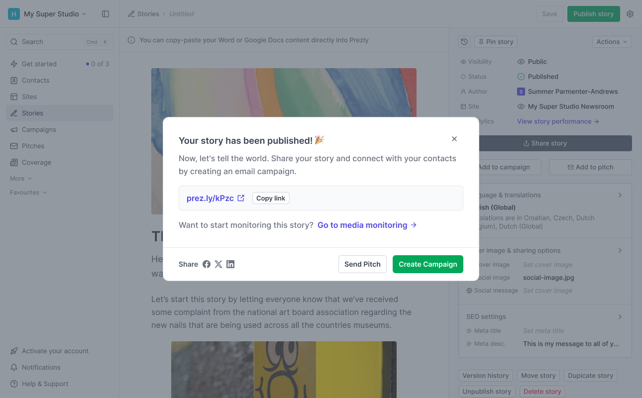 At Prezly, we’ve always struggled to get people to fully understand the app. Recently, we noticed that adding a story (press release/post) and sharing it was the biggest factor in users experiencing the “aha moment.”